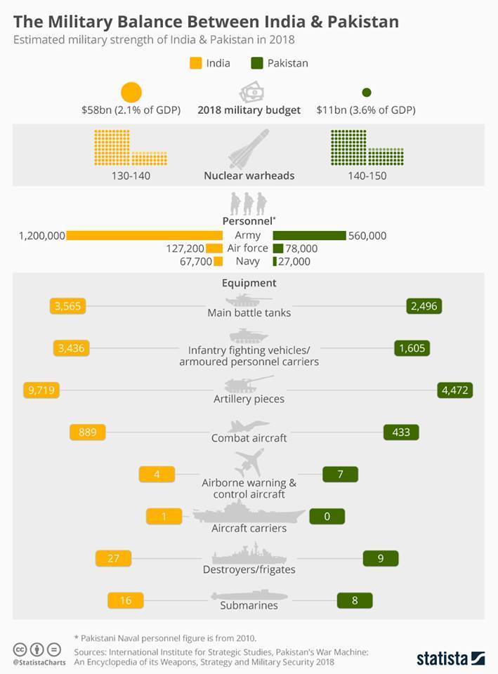 Табличка с соотношением сил Индия-Пакистан, на всякий случай. Увы, без подробностей, по типам техники.