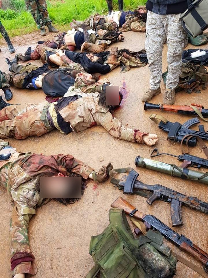 Бились в Хаме. Здесь. Пишут 18 асадистов и около 8 тахрировцев. Групповое фото убитые тахрировцы. одиночные асадисты https://twitter.com/QalaatAlMudiq/status/1102147736911122433