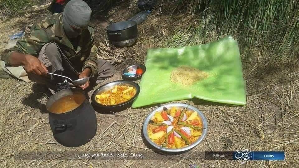 Это бойцы Халифата из Туниса. У них продовольственное обеспечение на норм. уровне. Все согласно требований шариата ( набор продуктов, меню).