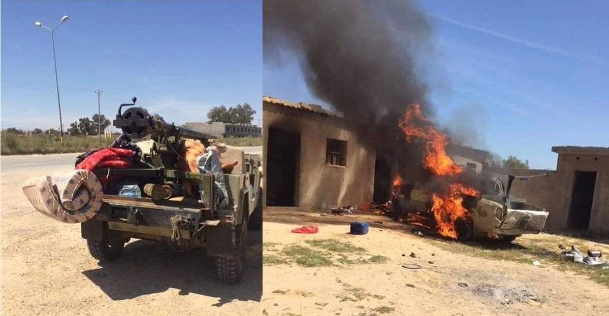 За время наступления на Триполи с 6 апреля, хафтаровцы потеряли один МиГ-21, два танка Т-55 и два бронеавтомобиля. Детально о потерях по ссылке: https://lostarmour.info/libya/
