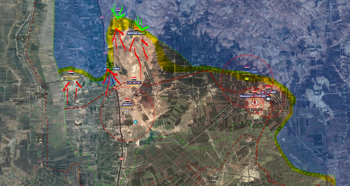 Хама.ТОУ пошел,давно не было видно. По грузовику. Видио в твитте https://twitter.com/QalaatAlMudiq/status/1127270306110951424