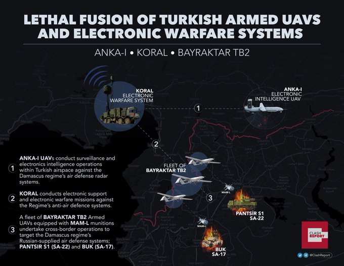 Редактор LIGA.net Петр Шуклинов: давайте поговорим о том, как именно Турции удается уничтожать российские системы противовоздушной обороны. На примере зенитного ракетно-пушечного комплекса "Панцирь-С1", которых турецкие беспилотники уничтожили уже несколько. Пункт первый. Сначала о цели. Российский "Панцирь-С1": зона захвата цели по дальности - до 20 км, по высоте - до 15 км. Пункт второй. Разведка. Первым свою работу выполняет БПЛА TAI Anka. Дрон способен целые сутки эффективно работать на высоте до 9 км с радиусом действия в 200 км. Пункт третий. Нейтрализация работы российских систем ПВО. Турция использует РЭБ Koral, способный, по данным из открытых источников, эффективно подавлять системы ПВО на расстоянии до 150 км. Пункт четвертый. Когда разведка проведена, а системы ПВО врага эффективно подавлены, в дело вступает боевой беспилотник Bayraktar TB2, вооруженный ракетами "воздух - земля". Для эффективного удара дрон должен находиться на расстоянии 8-14 км от цели (в зависимости от типа ракет). То есть в любом случае беспилотник входит в зону поражения российских систем ПВО. Без разведки и подавления это была бы смертельная акция. Турция успешно уничтожает российскую технику, что говорит о высоком уровне слаженности действий в турецкой армии.