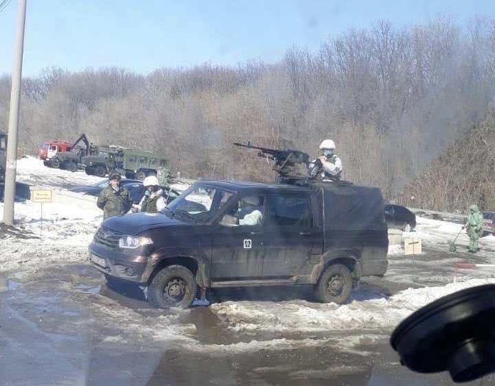 Тачанка по типу ребельской. Москали начали опыт перенимать. Скрепостан сегодня (или вчера) На трассе Самара-Оренбург размещено большое количество КПП. Военнослужащие вооружены помимо автоматического оружия, пулеметами калибра 12,7-мм НСВ «Утес».
