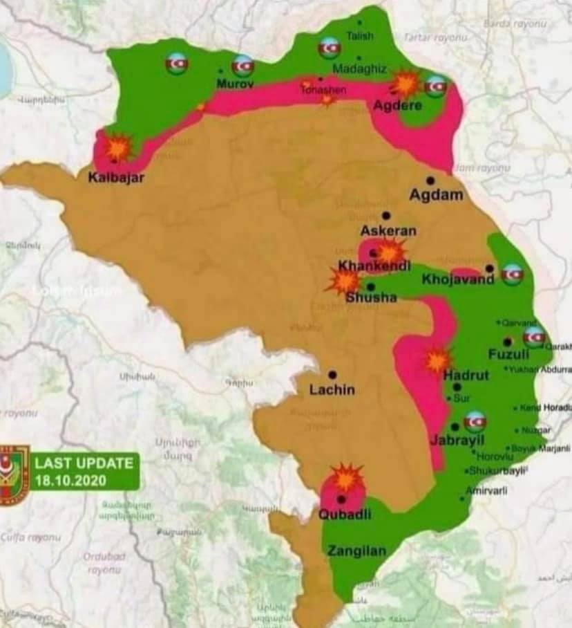 Констянтин Кучеренко Актуальна карта звільнених територій. Є неперевірена інформація, що підрозділи ЗС Азербайджану увійшли до міста Шуша