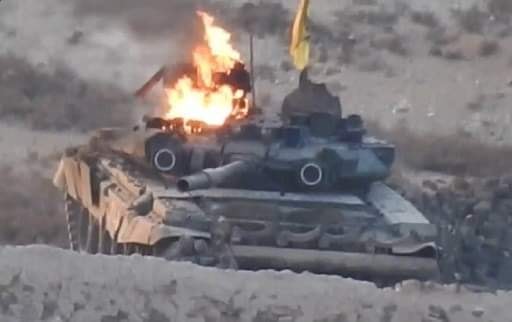 Этот Т 90,танк Хезболы.Залупасили его ТОУ. Экипаж покинул,танк.Один был ранен (держался за руку). Взрыв и возгорание самого танка на видио не было.По последующей геопривязке,башня все таки у него отлетела.