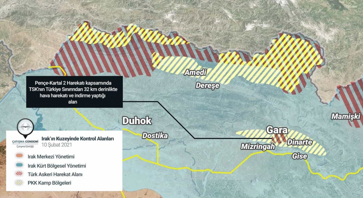 Ірак: Турецькі війська розпочали другий етап операції проти РПК “Кіготь Орла” в горяній місцевості Гара, північної провінції Дахук. Повідомляють про жорсткі сутички, що тривають у кількох селах – Сіян, Баргара, Пріз під горою Гара. Турецькі сили засовують бойові літаки та гелікоптери. Примітне, що підготовка операції турецьких командос відбувалося потайки від РПК і стала для них повною несподіванкою. А ще більше здивували турки курдських комуністів коли підрозділи спецназу десантувалися з гелікоптерів та зайняли ключові висоти на горі Гара, яка знаходиться в 32 км від турецького кордону. Паралельно з цим, турецькі спецслужби провели успішну операцію в районі Синджар на північному заході Іраку, в результаті якої був схоплений і доставлений до Туреччини один з ватажків PПK – Ібрагім Парим. Цей бойовик під кодовим ім’ям «Лашер» був «відповідальним з питань логістики» в терористичній організації.