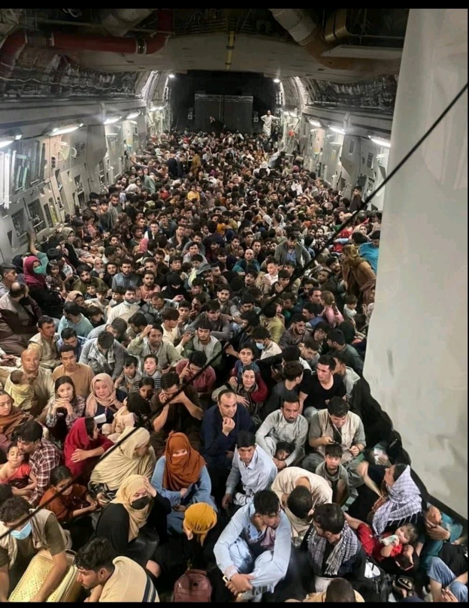 Вот так выглядит самолёт с афганцами внутри. Это все те люди, кому удалось улететь из Кабула