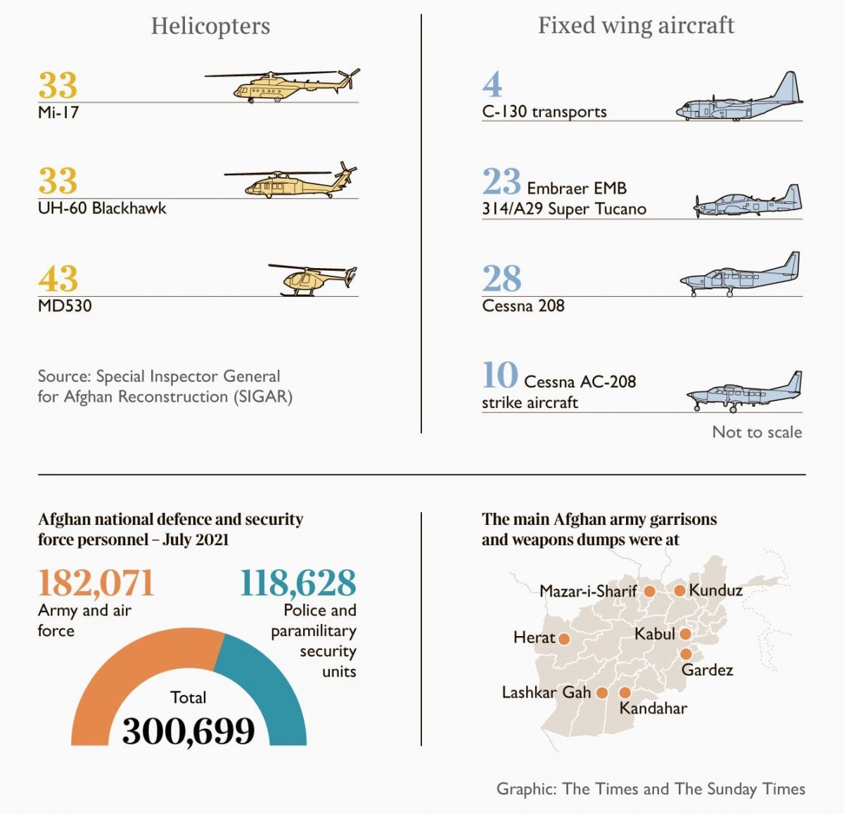 Согласно отчету базирующегося в США специального генерального инспектора по восстановлению Афганистана (Sigar), на конец июня афганские военно-воздушные силы эксплуатировали 167 самолетов, включая ударные вертолеты и самолеты.