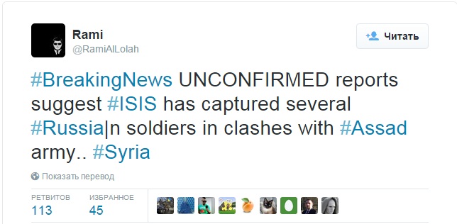 Если окажется правдой , завтра в инфопространстве будет жарко. https://twitter.com/RamiAlLolah/status/648923768010735616