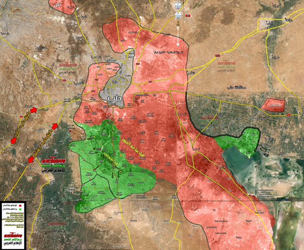 Як я зрозумів , асадівці після захоплення вчора двох сіл , сьогодні будуть атакувати Аль-Хадер . Зараз в твіттері вже є повідомлення про стрілянину і вибухи там Також пишуть про бій біля Kafr Haddad , можливо , будуть бити туди http://wikimapia.org/#lang=en&lat=35.917616&lon=37.065929&z=17&m=b Також активізувалися ІД біля авіабази Квейрес та знову бої на дорозі на Алеппо