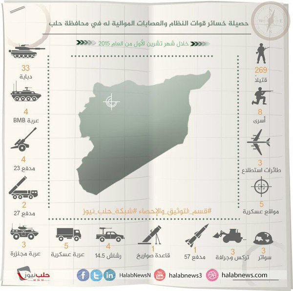 Типу , інфографіка втрат асада біля Алеппо за жовтень Десь так і є по техніці , але що означає літак і цифра 3 справа ? Хто читає арабською ?