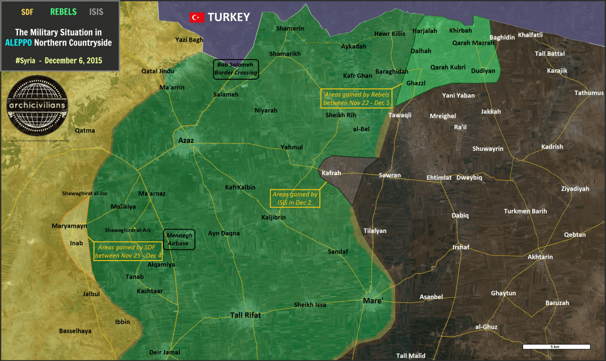 Обстановка довкола сирійського конфлікту станом на 7 грудня 2015 року Командування ЗС РФ продовжує нанесення ударів по об’єктах сирійської опозиції та терористичного угруповання “Даїш”. 6 грудня ц.р. чотири стратегічні бомбардувальники Ту-160 та сім бомбардувальників Ту-22М3 нанесли черговий груповий авіаційний удар по сирійській території. Заходи із забезпечення угруповання ЗС РФ на території Сирії включали перельоти військово-транспортних літаків Ан-124 та Іл-76.
