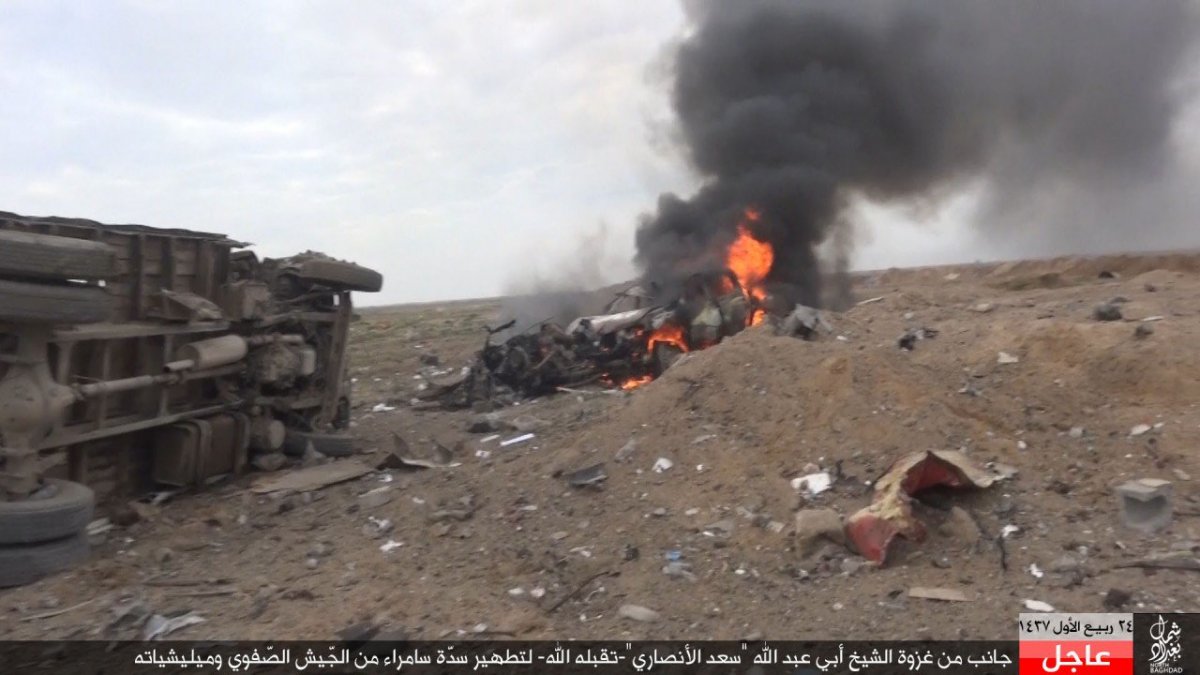 Вчера ночью российские самолеты разбомбили нефтяные грузовики в Дейр-Джамал, к северу от сирийского города Алеппо.