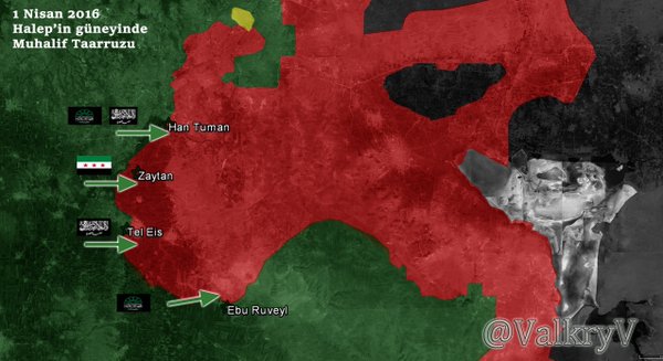 В результате сегодняшнего наступления повстанцев на юге пр Алеппо освобождены пункты Тель Эйс, Эбу Рувейль и Хобер.