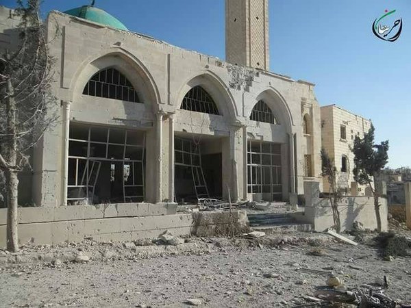 асадиты/космонавты вчера нанесли авиа удары по мечети в Хуле (Хомс) надеясь убить людей на пятничной молитве Из за того что молитвы в пятницу отменили жертв удалось избежать Самолеты режима асада/космонавтов так же атаковали ракетами мечеть имени Аль Бара ибн Малик в Алеппо