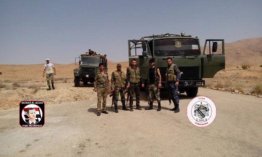 бойцы 406-го батальона 41-го полка спецназа сирийской армии, которые направляются для участия в боевых действиях в городе Алеппо. Любопытно, что вместе со ставшими уже привычными российскими автомобилями повышенной проходимости ГАЗ-3308 "Садко" виден новый грузовик минского автозавода.