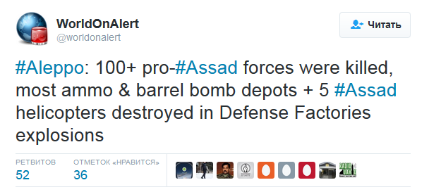 Как сообщают СМИ из Сирии, после полуночи 16 июля в районе военно-промышленной зоны Маамель ад-дефа близ Сферы, где русские и ассадиты производят бомбы, в т.ч. «бочковые», произошла серия мощнейших взрывов. Там и видео есть. http://newsoboz.org/mir/do-200-russ...nichtozheny-vertolety-samolety-17072016143100