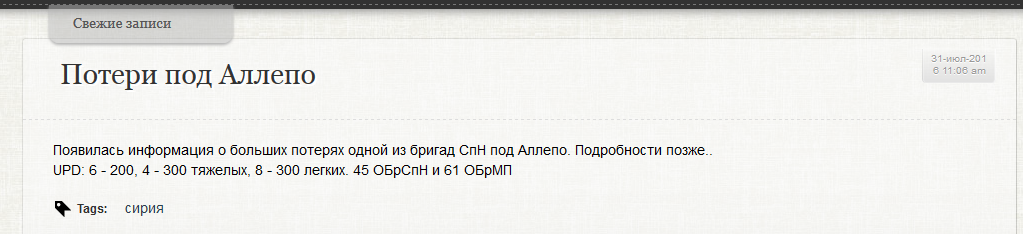 Нусра снимает с Латакии свои подразделения и перебрасывает под Алеппо. Видимо потери очень большие и прорвать блокаду не получается.