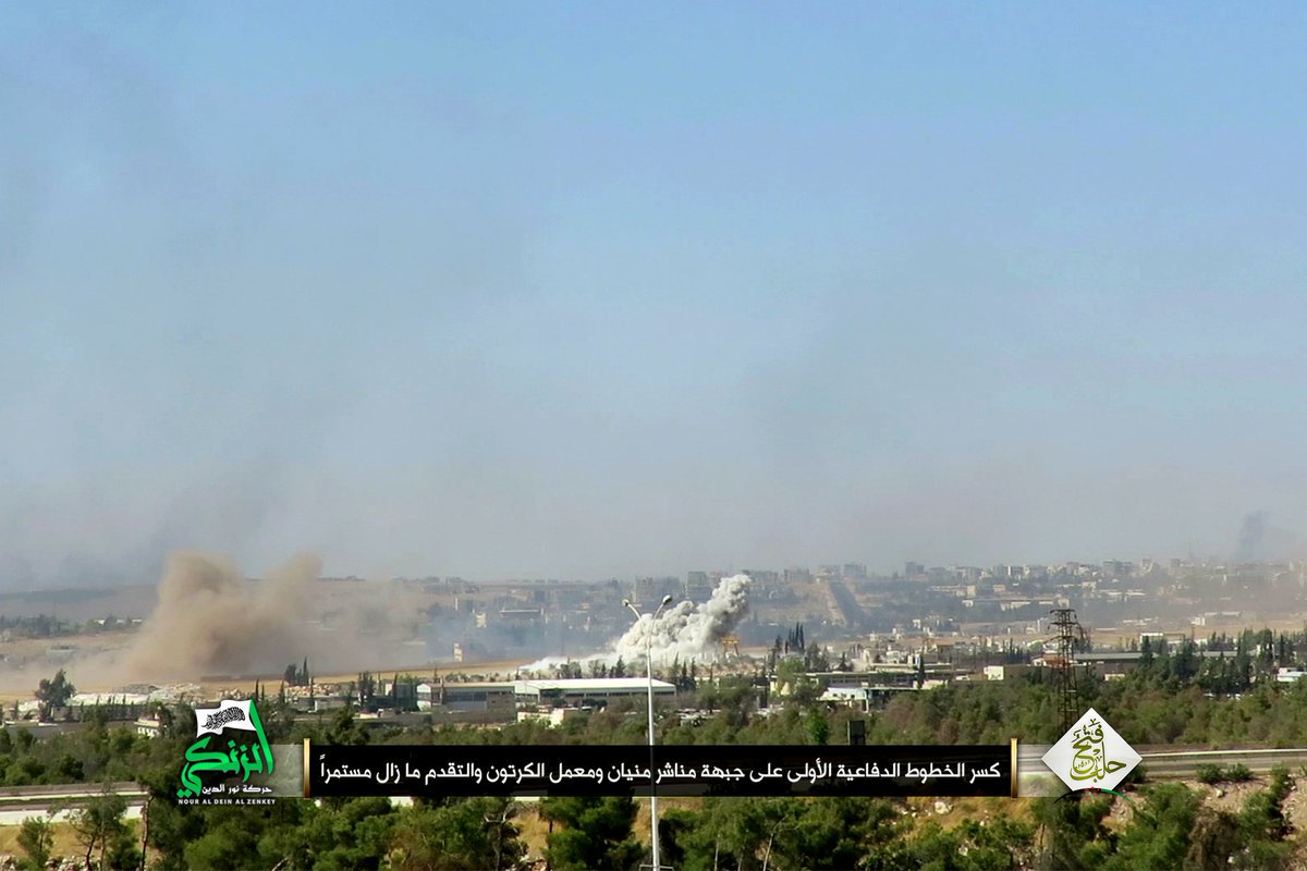 Повстанцы начали наступление на нескольких фронтах в северном Алеппо. Они взорвали тоннель бомбу под Amriya и также продвижение в Ramoussah.