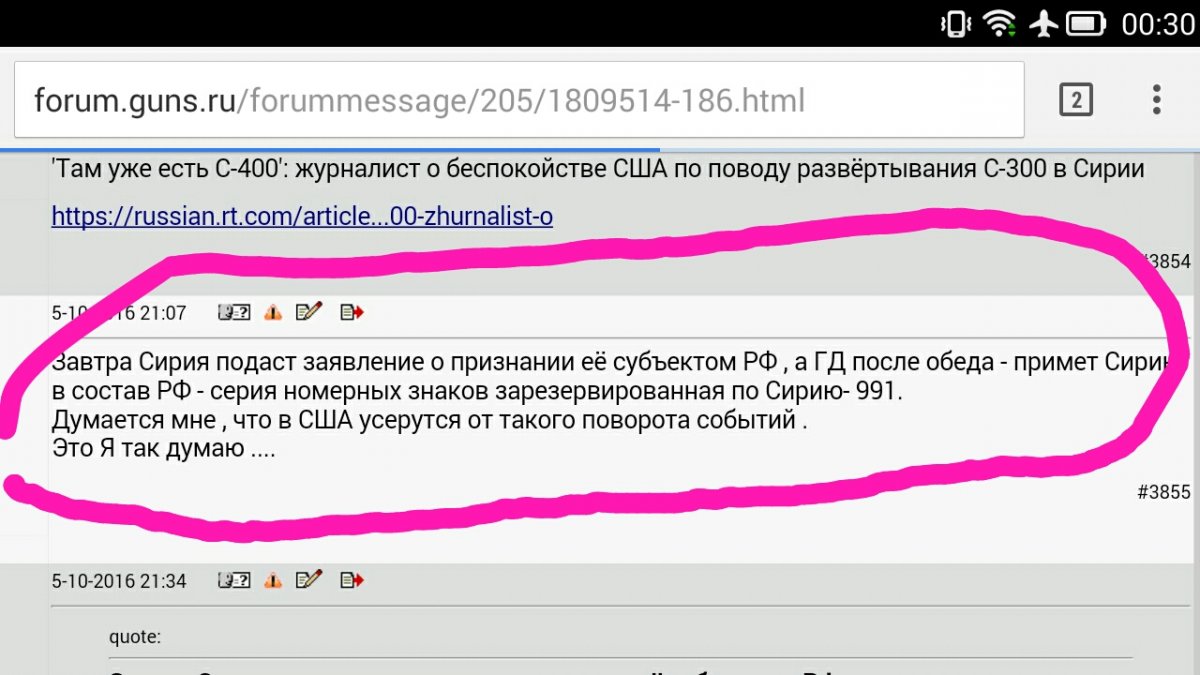 А в это время в замке у вована! Госдума РФ единогласно одобрила бессрочное размещение авиагруппы в Сирии Депутаты Государственной Думы Российской Федерации ратифицировала российско-сирийское соглашение о бессрочном размещении авиационной группы РФ на территории Сирии. Как передает ТАСС, за ратификацию единогласно проголосовали все присутствующие 446 депутатов. Документ был подписан 26 августа 2015 года в Дамаске, а почти год спустя - 9 августа 2016 года - внесен президентом РФ на рассмотрение Госдумы. В соглашении отмечается, что российская авиационная группа размещается на территории страны по просьбе сирийской стороны и дислоцируется на аэродроме Хмеймим (провинция Латакия) на безвозмездной основе. Применение воздушной группировки РФ осуществляется в соответствии с решением ее командира по согласованию с представителями сирийских властей.