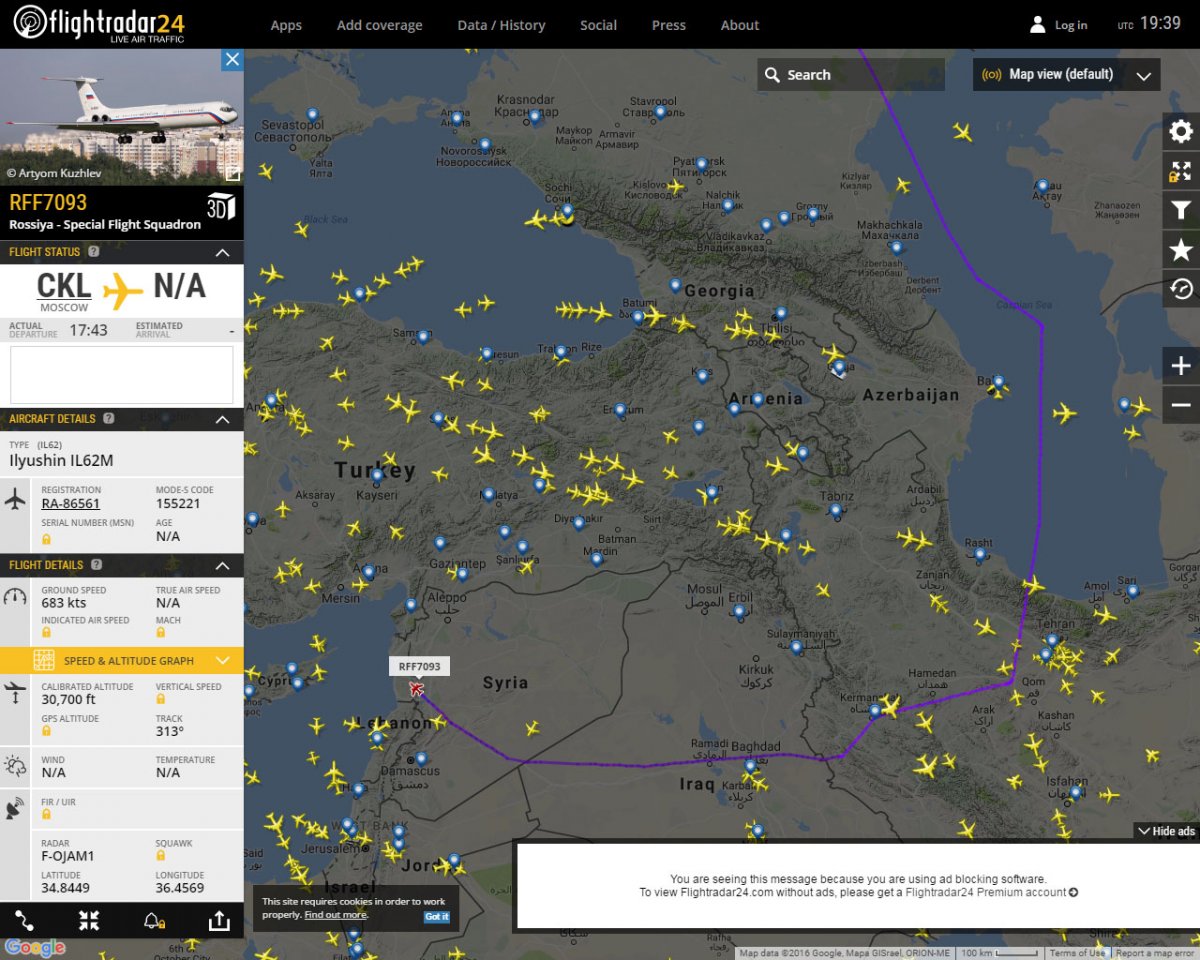 Еще один спецборт из Москвы идет на посадку в Латакии... RA-86561 Знаменитый правительственный Ил-62, на котором 24 марта 1999 года Евгений Примаков, отправляясь к американскому вице-президенту Альберту Гору, но узнав о предстоящих бомбардировках американцами Югославии, совершил свой знаменитый разворот над Атлантикой...".