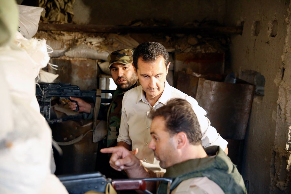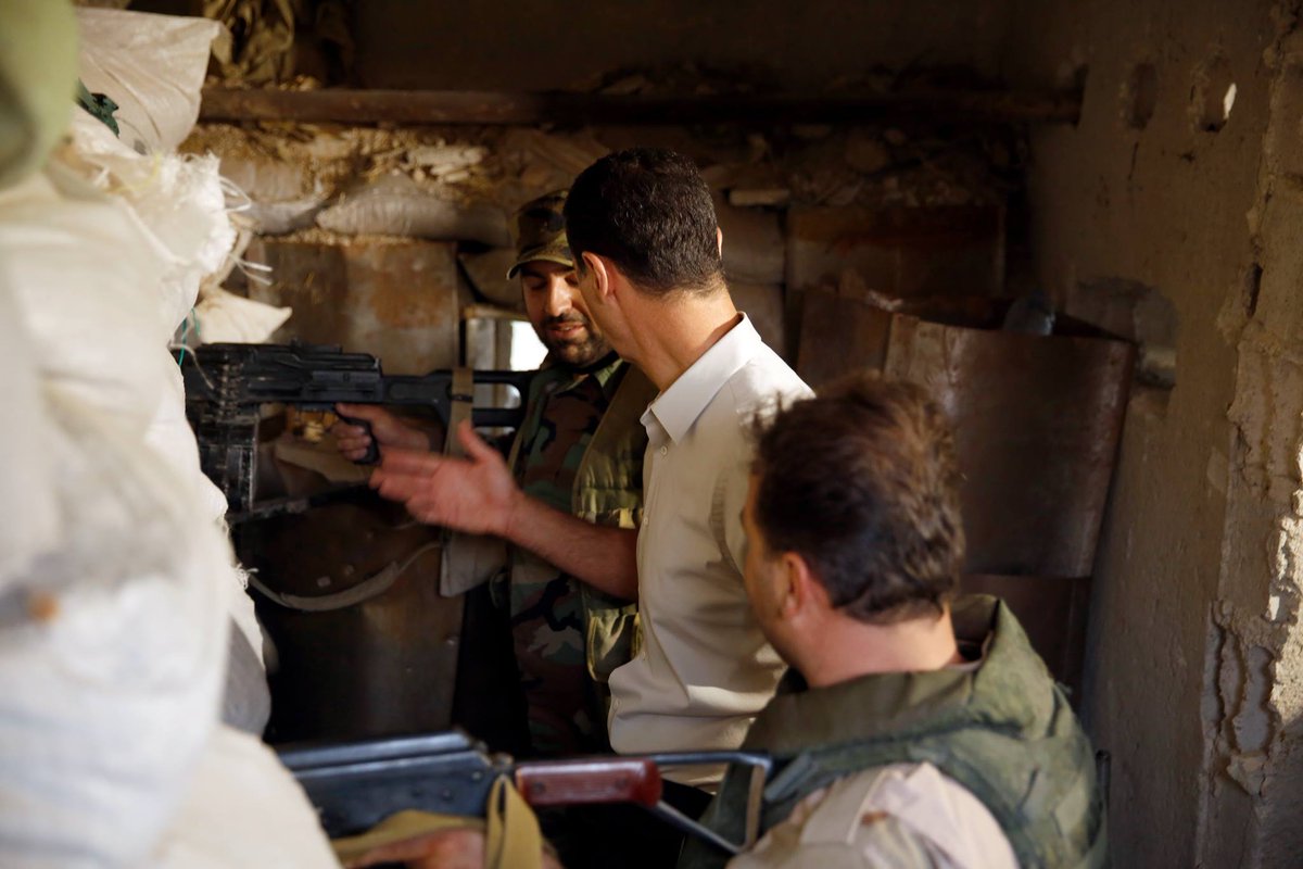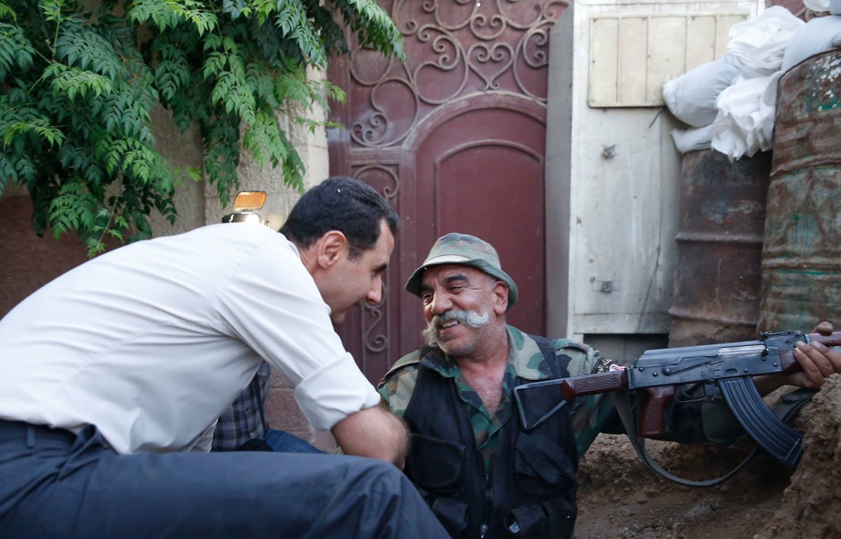Не знаю, було в цій темі, навряд чи, але 25 червня 2016 року Башар Асад відвідав фронт, побувавши в бойових порядках частин, які оперирують в районі військового аэродрома Мардж ас-Султан у Східній Гуті. Президент відвідав передові позиції, поспілкувався з вояками, преломив з ними хліб. Дуже цікавий фоторепортаж.