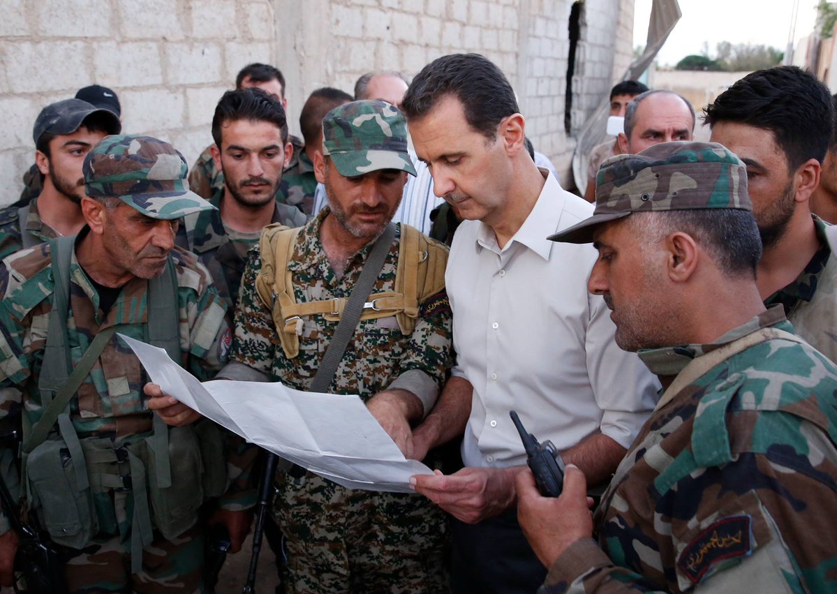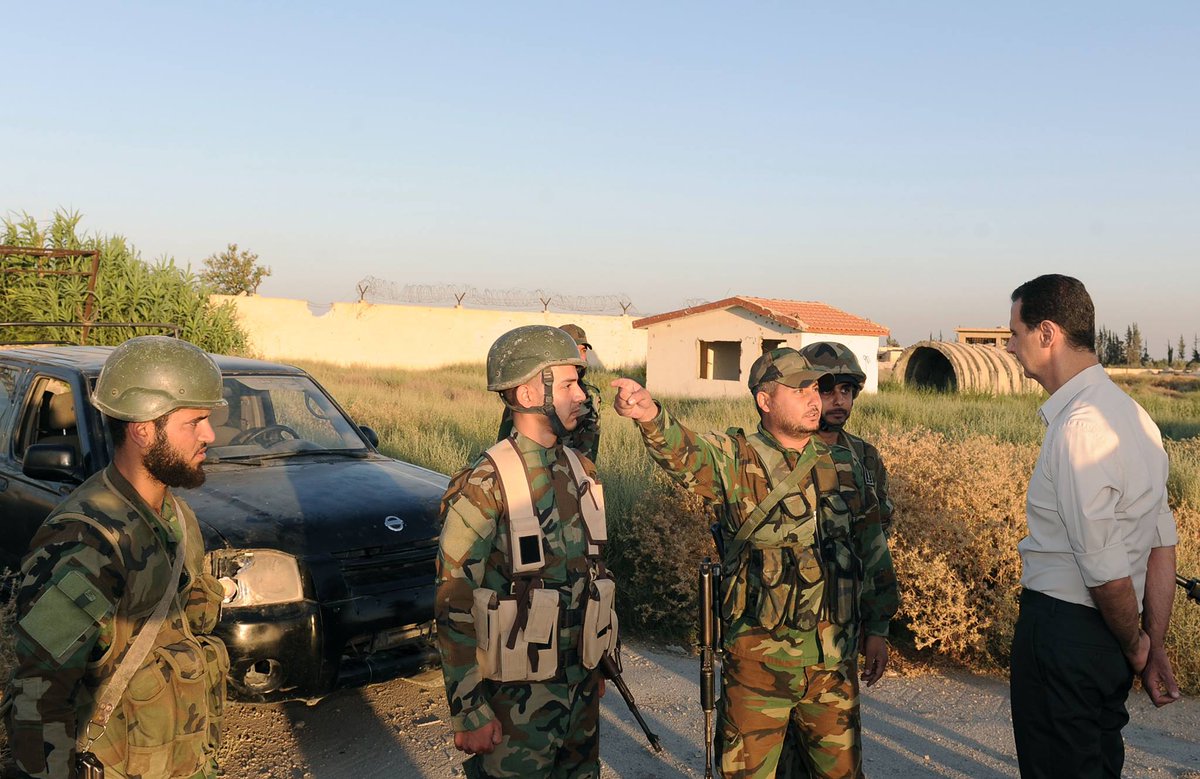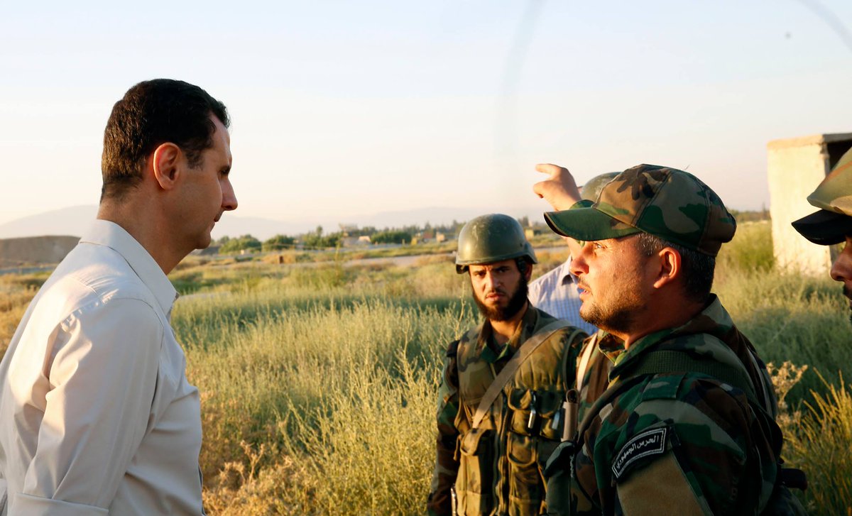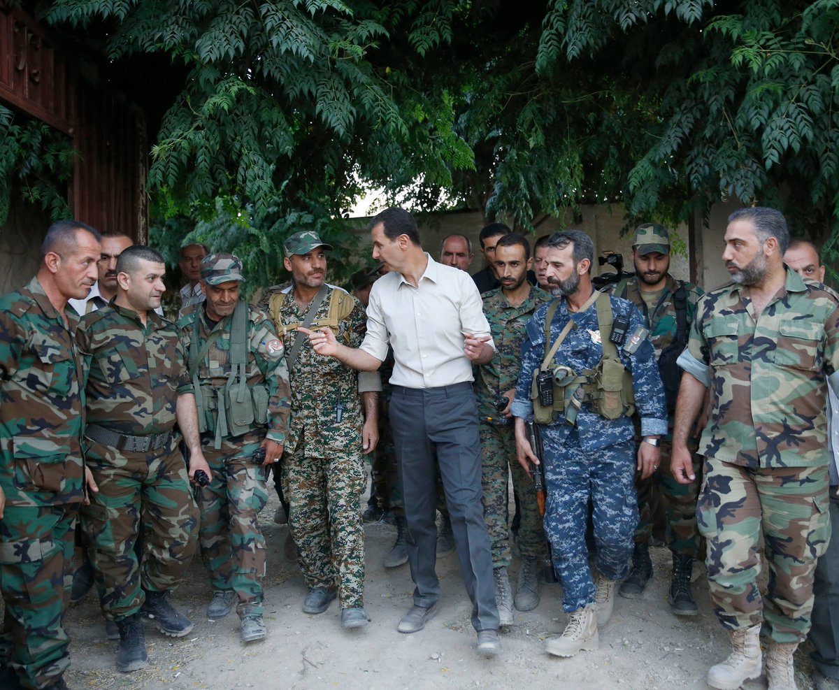 Не знаю, було в цій темі, навряд чи, але 25 червня 2016 року Башар Асад відвідав фронт, побувавши в бойових порядках частин, які оперирують в районі військового аэродрома Мардж ас-Султан у Східній Гуті. Президент відвідав передові позиції, поспілкувався з вояками, преломив з ними хліб. Дуже цікавий фоторепортаж.