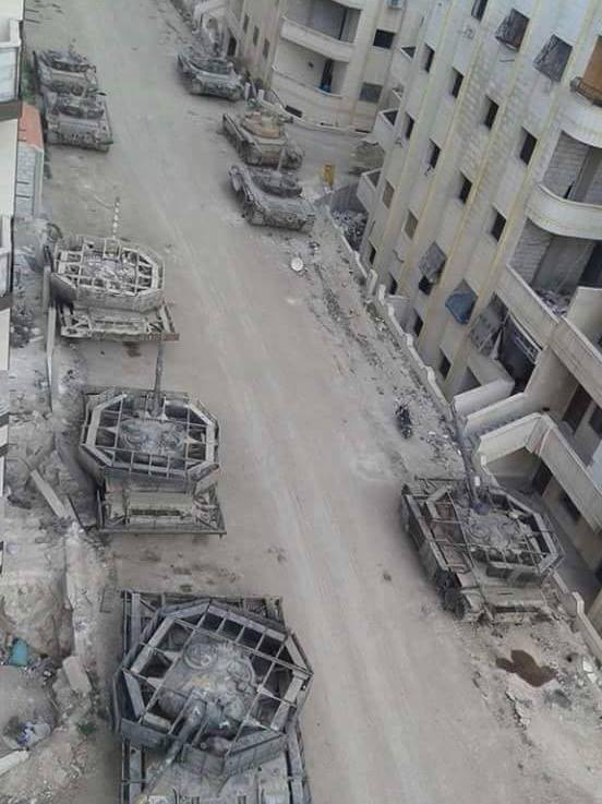 Кацапосапёры собрали ВОПы в Алеппо на подрыв. Обратите внимание - почти всё самоделки ( ну кроме авиационных суббоеприпасов, которыми сами кацы и бомбили город и ПГ-15 с БМП-1). Похоже что ребелам в этом плане никто не помогал. Только внутренние резервы - самостоятельное производство всяких эрзацев и то, что у асадитов отжали. Вот тем и воевали. Зато сколько добра кацы Асаду навезли.