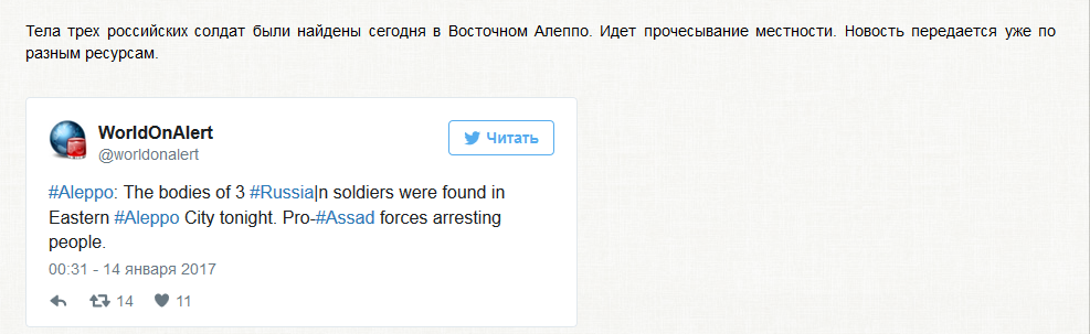 Но зато ИГИЛ сегодня начал штурм Дейр эз Зора. Наступают с трёх сторон. Хотят уничтожить асадитский анклав на территории, которую они контролируют. Намерения серьёзные, но от возьмут или нет - никто не знает. Может если падёт Ракка хотят сделать его новой столицей. http://www.eurointegration.com.ua/news/2017/01/14/7060120/