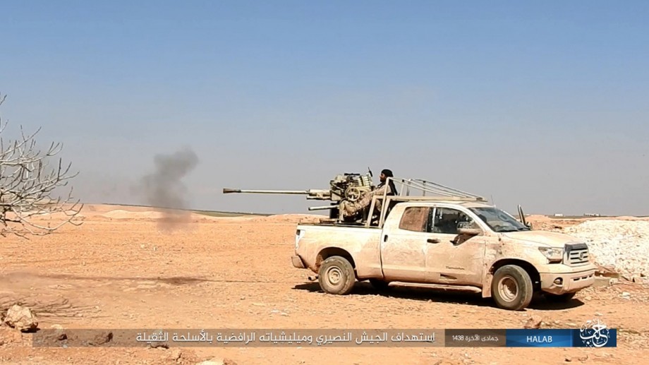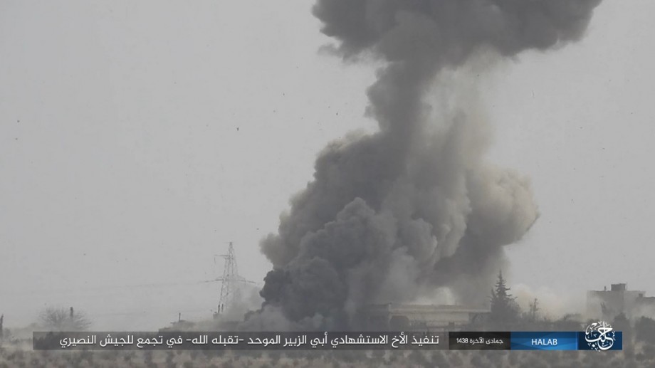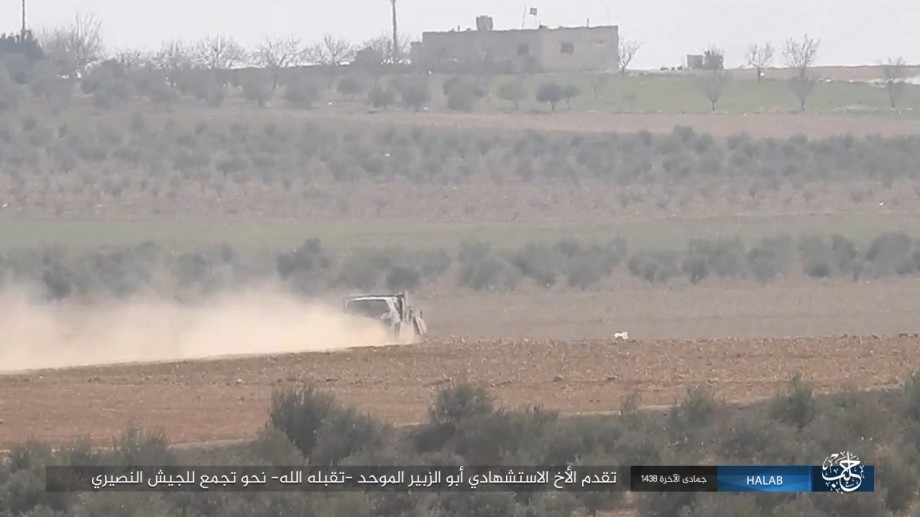 в описании # Destroy: Video of the burning of a tank system Alnasiri after being targeted by a missile wave of Islamic state