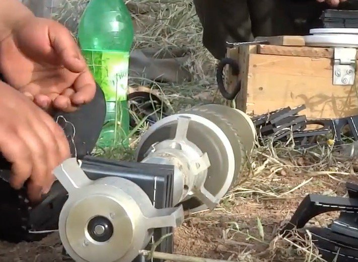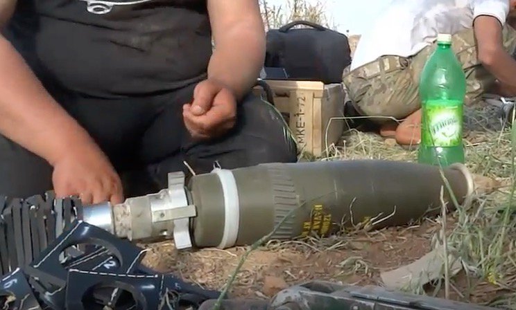 А маркировку уже прячут. Снаряд перевернули на 180 градусов, после извлечения с ящика, что бы маркировка в кадр не попала.