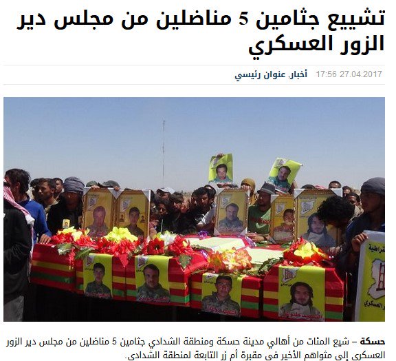 Здесь фиксируют потери лоялов и курдов,как персонально,так и списками,на всех фронтах.Выбирайте,какие Вам нужны https://twitter.com/HomsDocumentary/status/860213347416985601