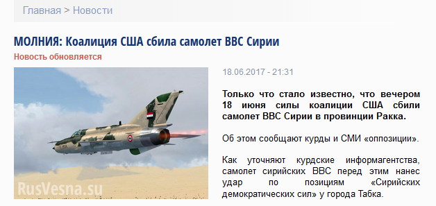 У мокшан подозрительное молчание по поводу сбитого американцами асадитскоро Су-22. Обычно в таком случае начинался недельный вой. Как собаки Баскервилей выли и причитали: "за что Асадушку любимого то обидели, проклятые пиндосы?" А тут молчат. Что то не то.