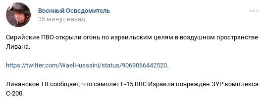 Проасадовский твиттер пишет(Гугл перевод) и постит эту фотку (4 цель был хит несколько KMs #Sidonберега, источники подтверждающие что F-15 был разрушен (S-200 запуска после обручения)