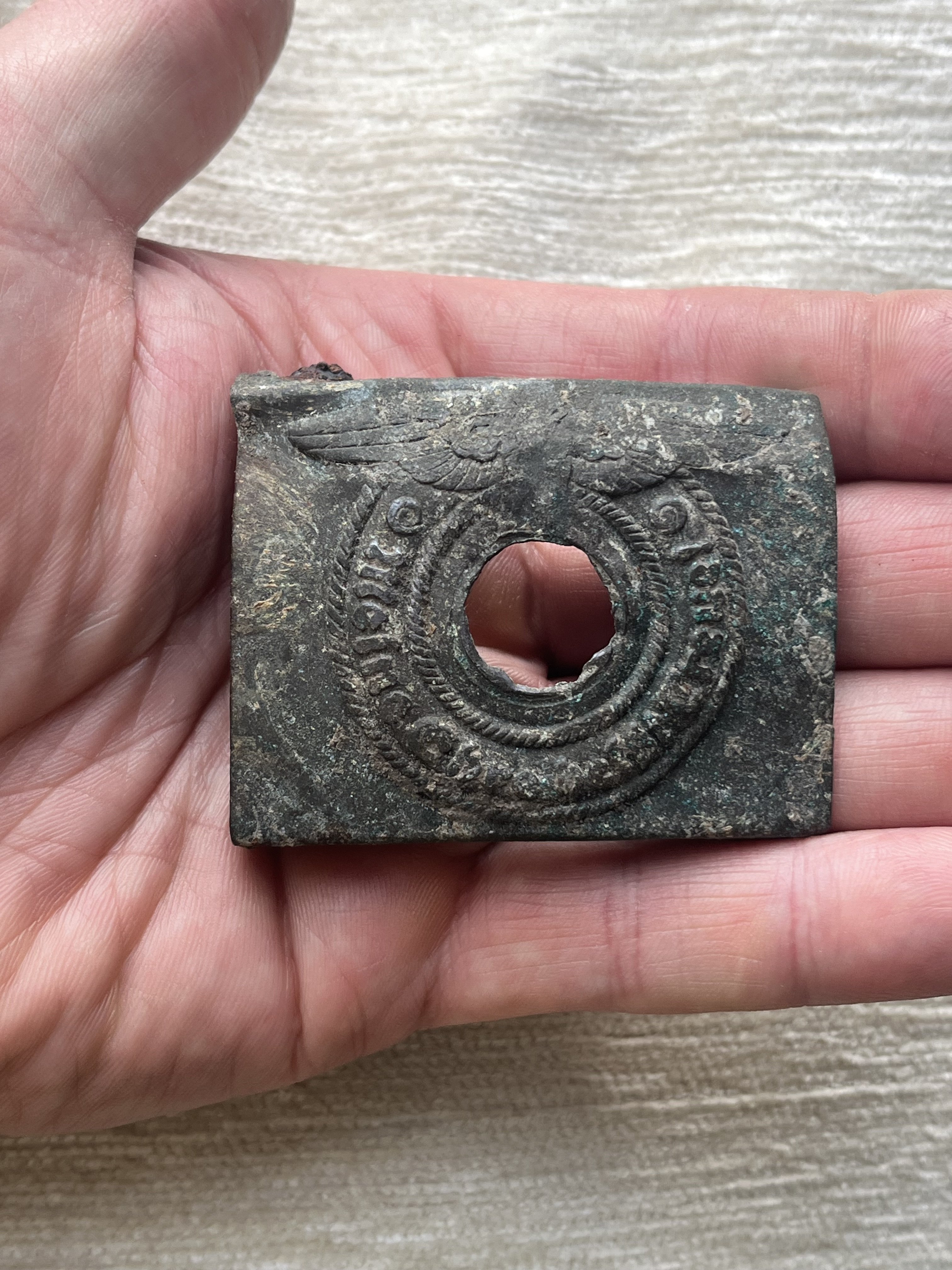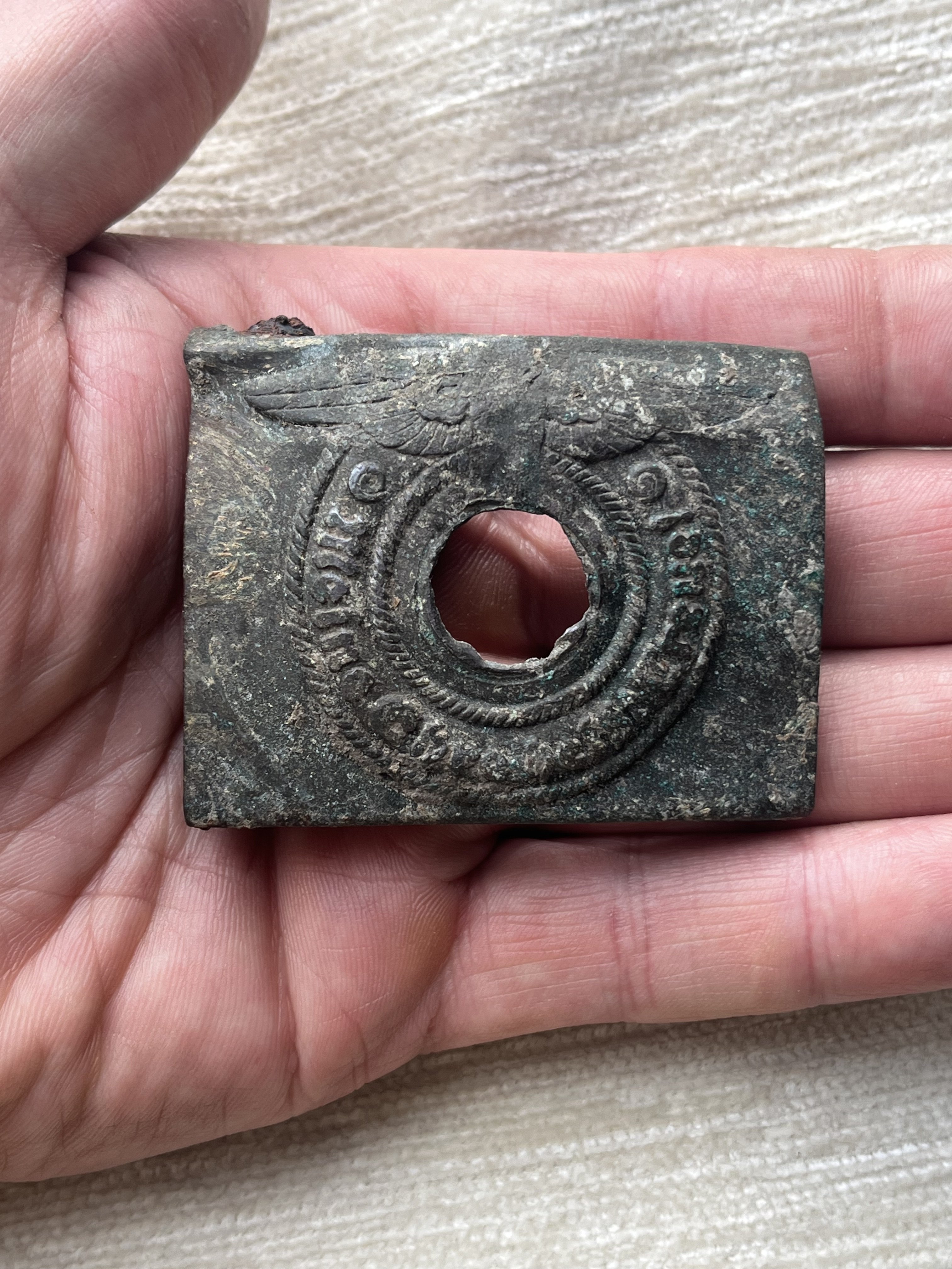 Доброго всем! Попался ремень СС с бляхой в окопе РККА. Как Я понимаю со свастикой использовать было нельзя, поэтому свастику солдатик убрал… Хотел бы узнать, за сколько можно продать. Спасибо