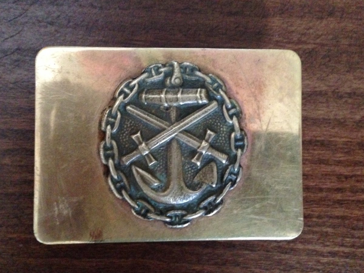 Пряга отпалированна мной .Принадлежала главному корабельному старшине ВМФ который уволися в 1946 г. служил в Кроншта́дте и Ленинграде(по рассказу)говорят был к ней и ремень......но ушел на правку бритв и ножей в далеких 70х.