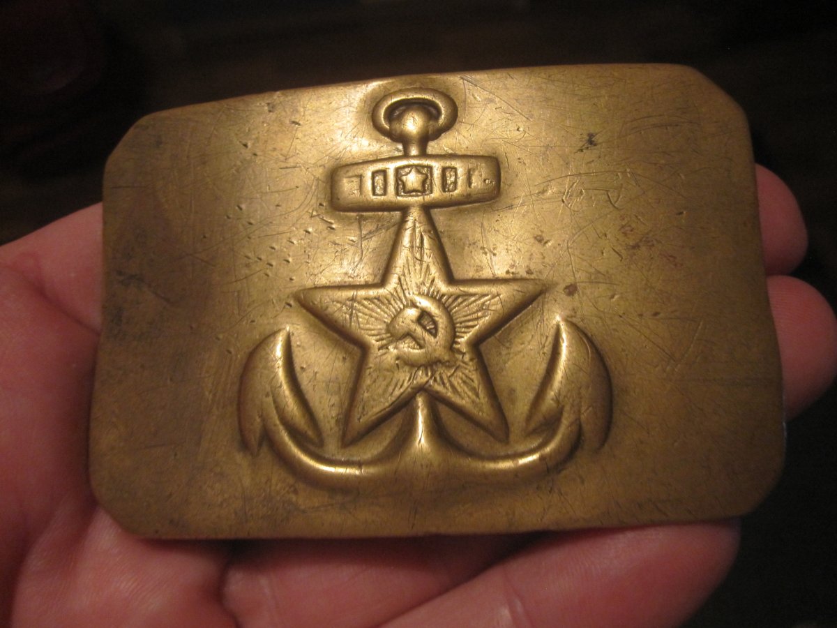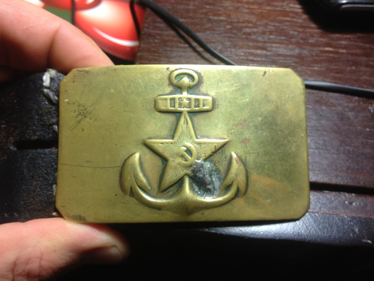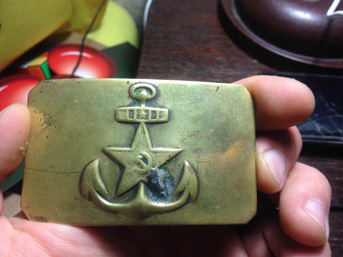 Я служил на флоте и скажу вам одну любопытную вещь,у нас по сроку службы бляху выравнивали,а не на флоте,в сухопутных войсках,её наоборот згибали.Поэтому,чтобы флотскую бдяху была возможность выровнять до плоского состояния,нужно было сначала отпаять всё что мешало с внутренней стороны.После выравнивания,всё припаивалось обратно!