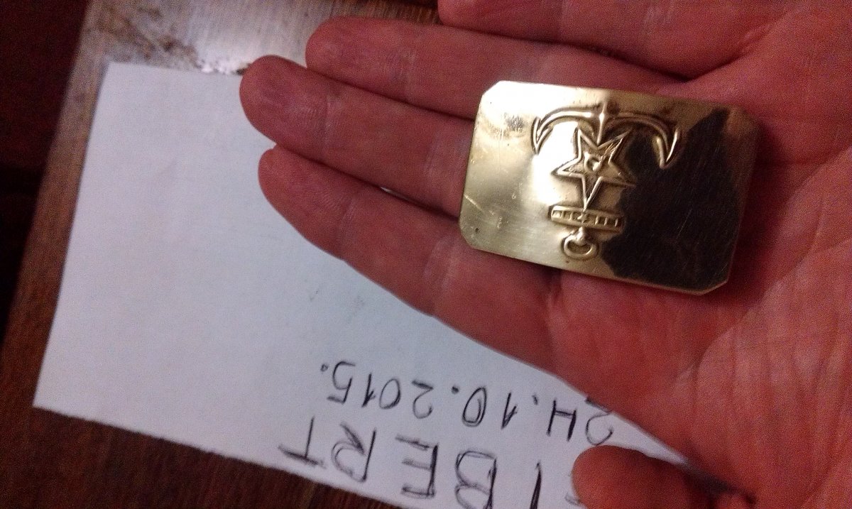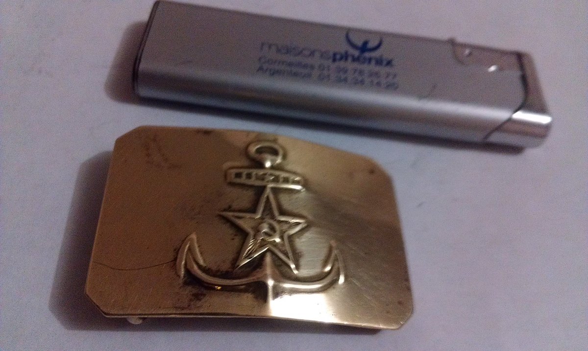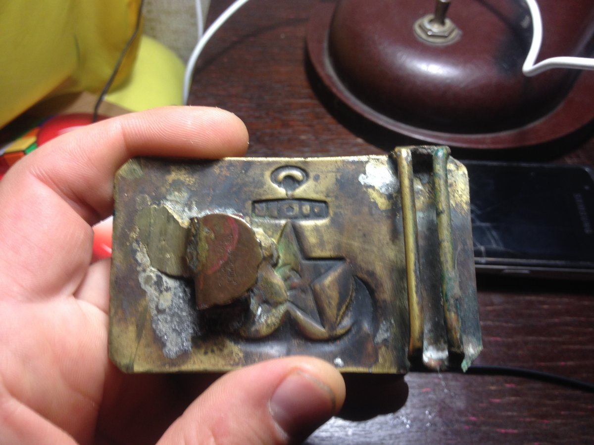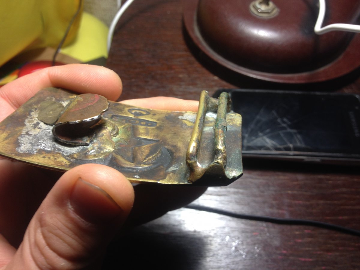 Я служил на флоте и скажу вам одну любопытную вещь,у нас по сроку службы бляху выравнивали,а не на флоте,в сухопутных войсках,её наоборот згибали.Поэтому,чтобы флотскую бдяху была возможность выровнять до плоского состояния,нужно было сначала отпаять всё что мешало с внутренней стороны.После выравнивания,всё припаивалось обратно!