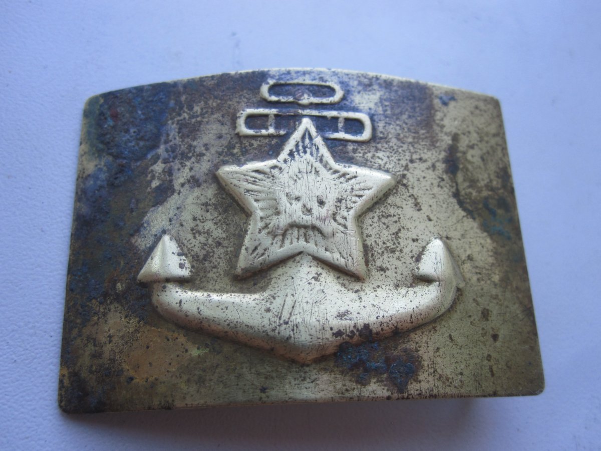 Приветствую всех любителей флота. Есть вот такая пряжка , определили ее как военного выпуска. Но вот вопрос : нигде не встречал чтобы на звезде были не лучики а зерно. С лицевой стороны немного затерта , но видно что штамп был не глубокий изначально. Может кто знает по разновидностям и редкости ? С ув.