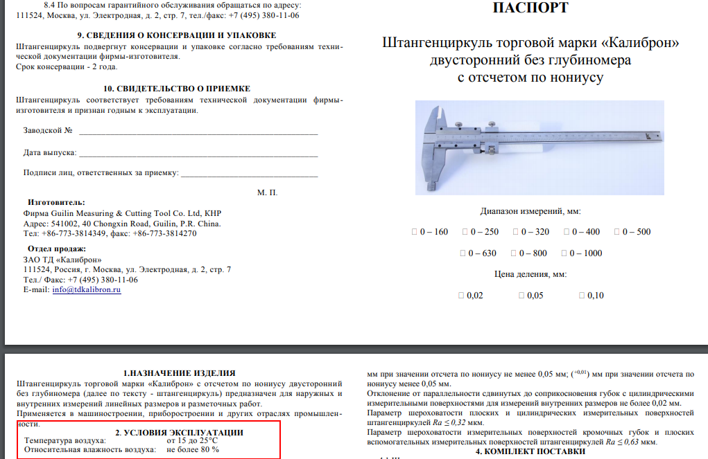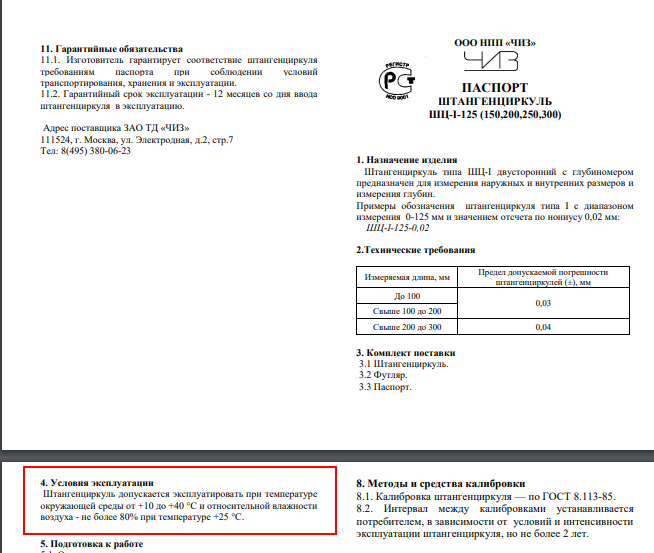 Сказано,штангенциркуть надо эксплуатировать в при температуре не ниже +10 градусов.