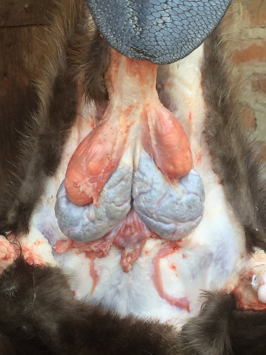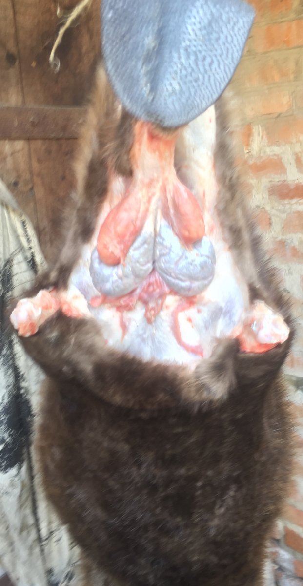 А ось так вона виглядає при розробці туші.... (доречі світлі мішечки, це якраз і є з тією рідиною, що нею він мітить територію, під ними темного коліру і є сама струя в складчастих мішках)... Це для теоретиків, у яких "вона буцімто є, а от у практиків - нема"....