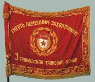 Интересный вопрос !!!! 3-я гвардейская танковая армия сформирована 14 мая 1943 года Приказом Ставки ВГК № 46174[5] в резерве Ставки ВГК. Сформирование 3 Гв. ТА происходило в районе города Плавск Тульской области. После окончания Великой Отечественной войны 3 Гв. ТА была включена в состав Группы советских оккупационных войск в Германии. В соответствии с приказом НКО СССР от 10.06.45 г. № 0013 в бронетанковых и механизированных войсках во второй половине 1945 г. осуществлялось переформирование танковых корпусов в танковые дивизии, механизированных корпусов — в механизированные дивизии, а танковых армий в механизированные армии. 3 гвардейская танковая армия была переформирована в 3 гвардейскую механизированную армию. Место дислокации — Эберсвальде (восточная часть ГДР). То есть, с 1945 года знамя должно быть другим ???? 1960 год. 3 гвардейская танковая армия стала именоваться 18 гвардейской общевойсковой армией