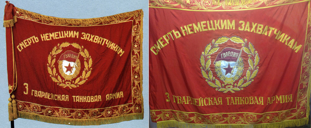 Я, наверное, не совсем правильно выразился в своем посте. Знамена были разные, это материал и техника их исполнения были одинаковые (отличающиеся от обсуждаемого знамени)