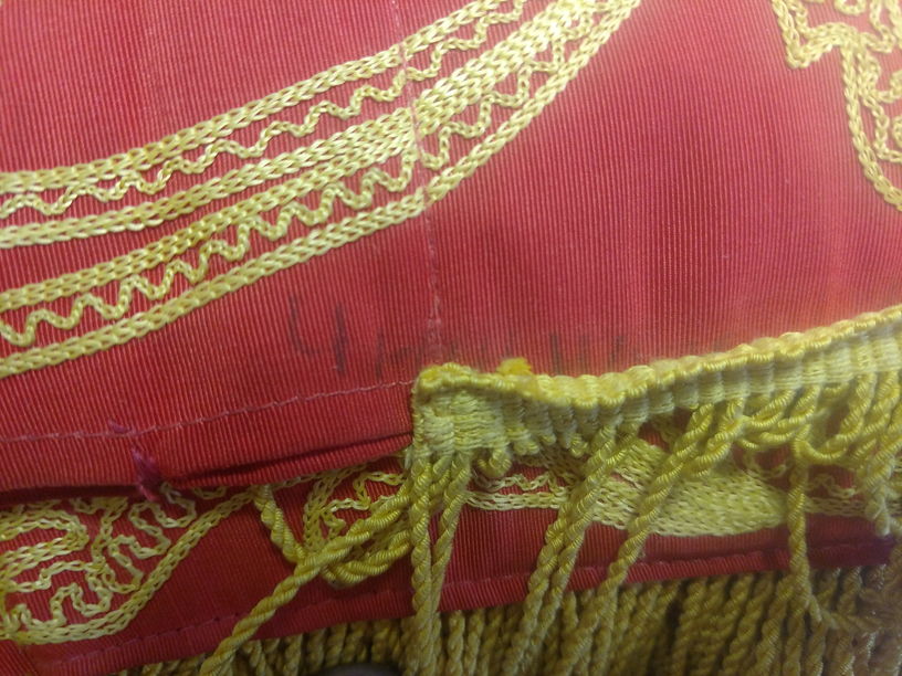 Приветствую Камрады. Было проведено небольшое исследование истории и происхождения данного знамени. Консультации проводились в музее ВОВ (Киев), ВОВ (Москва) и музее Вооруженных Сил РФ. В музее Вооруженных Сил РФ была получена информация о том, что знамя 3 Гв. ТА которое прошло ВОВ находится у них в фондах музея. Находится оно в плохом состоянии и поступило к ним в начале 50-х годов. В музее ВОВ (Киев) и ВОВ (Москва) удалось установить, что данное знамя у них отсутствует, копий этого знамени у них не было, нет и никогда не заказывали. Еще возникал вопрос по поводу шрифта, который отличается от шрифта на знамени, прошедшем ВОВ и находящемся в музее Вооруженных Сил РФ. После общения с экспертами в этой области установили, что данный шрифт начал применятся на боевых знаменах Армии СССР в 50-х годах. В этом можно легко убедится просмотрев фотографии боевых знамен на просторах интернета, разновидностей шрифтов в послевоенные годы было не так уж много. Во время осмотра знамени в живую, эксперты установили , что данное знамя было изготовлено в послевоенные годы СССР. Также эксперты помогли найти подпись мастера, который изготовил данное знамя (фото прилагается) и еще вшитый квадратный кусок плотного материала во внутрь знамени.(что на нем обнаружить не удалось так как для этого пришлось бы его распороть по шву) Учитывая выше сказанное, то что знамя (прошедшее ВОВ) попало в музей в начале 50-х, а сама Армия под разными названиями просуществовала до конца 70-х, напрашивается вопрос, какое знамя было у 3 Гв. ТА в период с 50-х по 70-е годы и где оно. В музеях нет! *3 Гв. ТА - 3 Гвардейская Танковая Армия.
