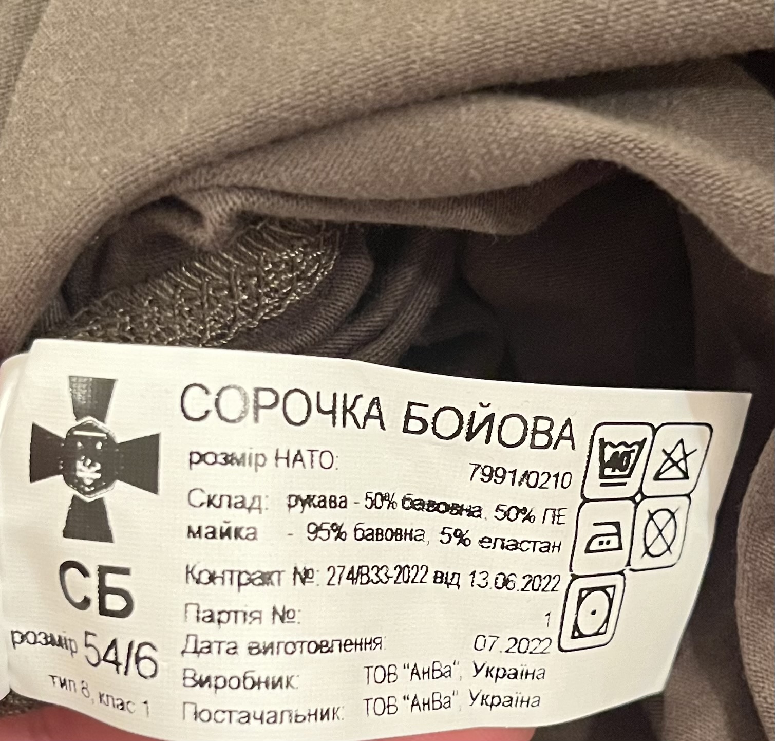 Оригінальна бойова сорочка, абсолютно нова, розмір 54/6. Ціна 500 грн