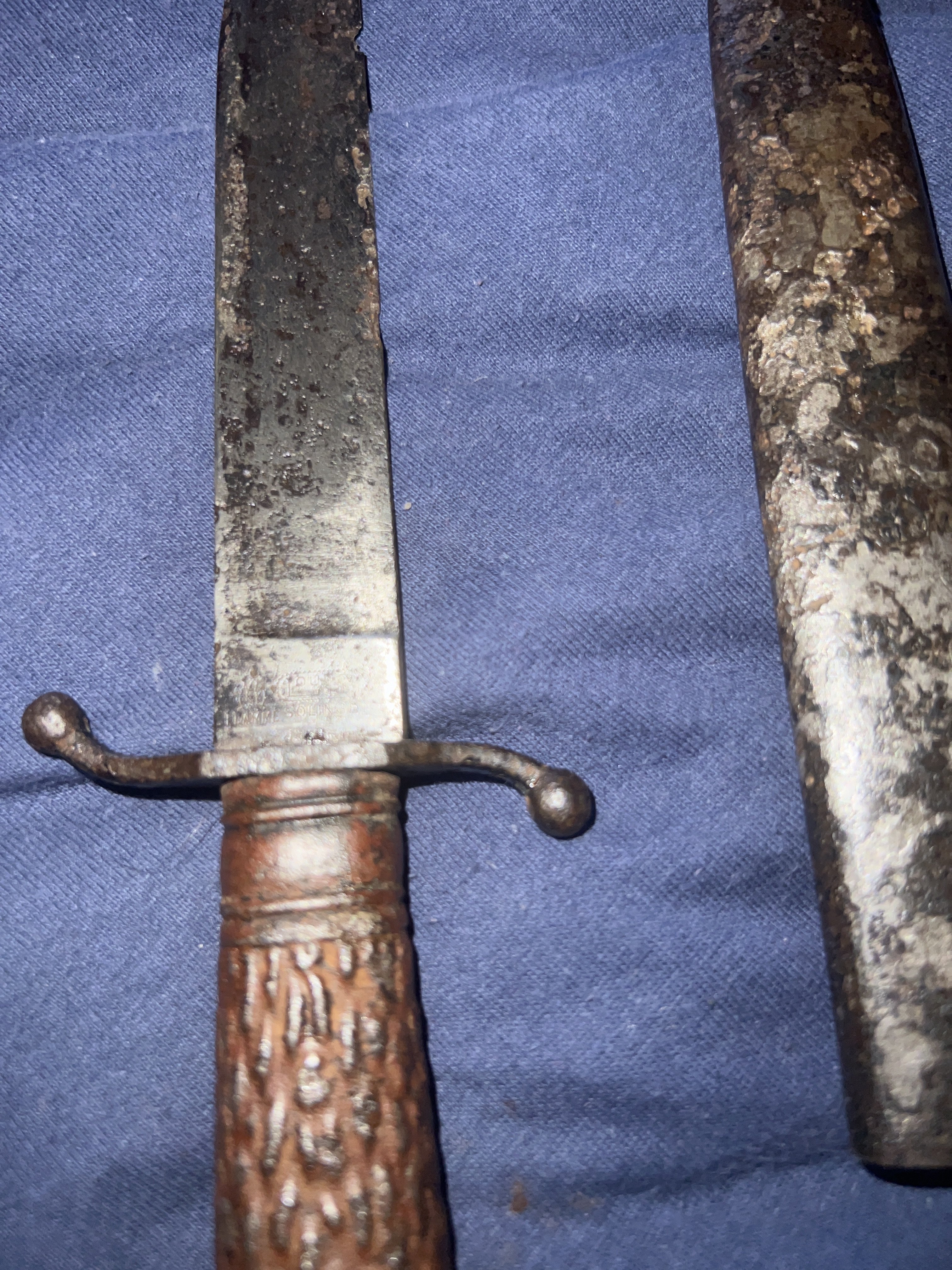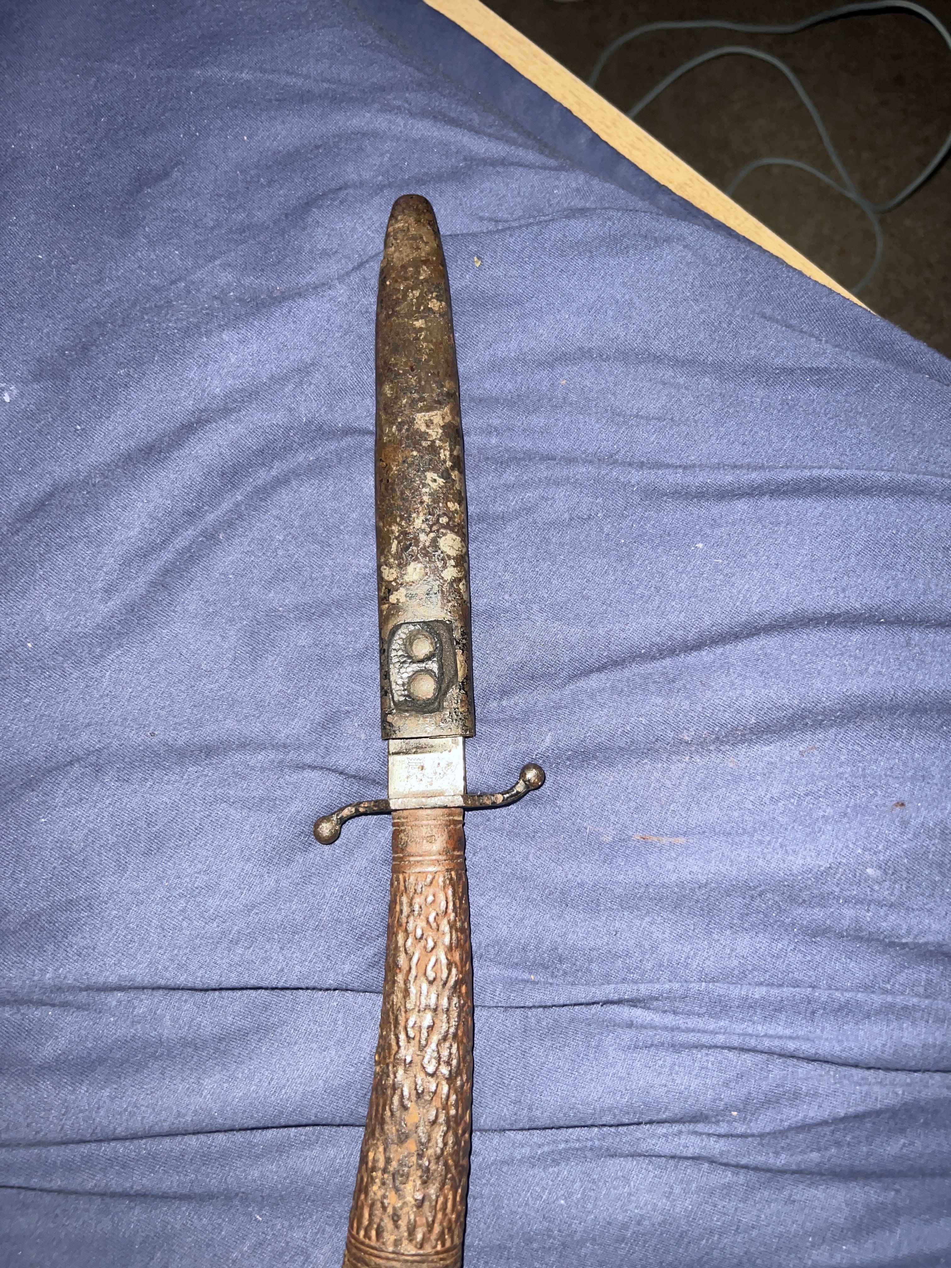 даже очень боевой , но лежал в плохом месте ,, оторвана кожа , это часто случается и зазубрины, вещь не частая . но под убитая , по цене 100-130 баксов