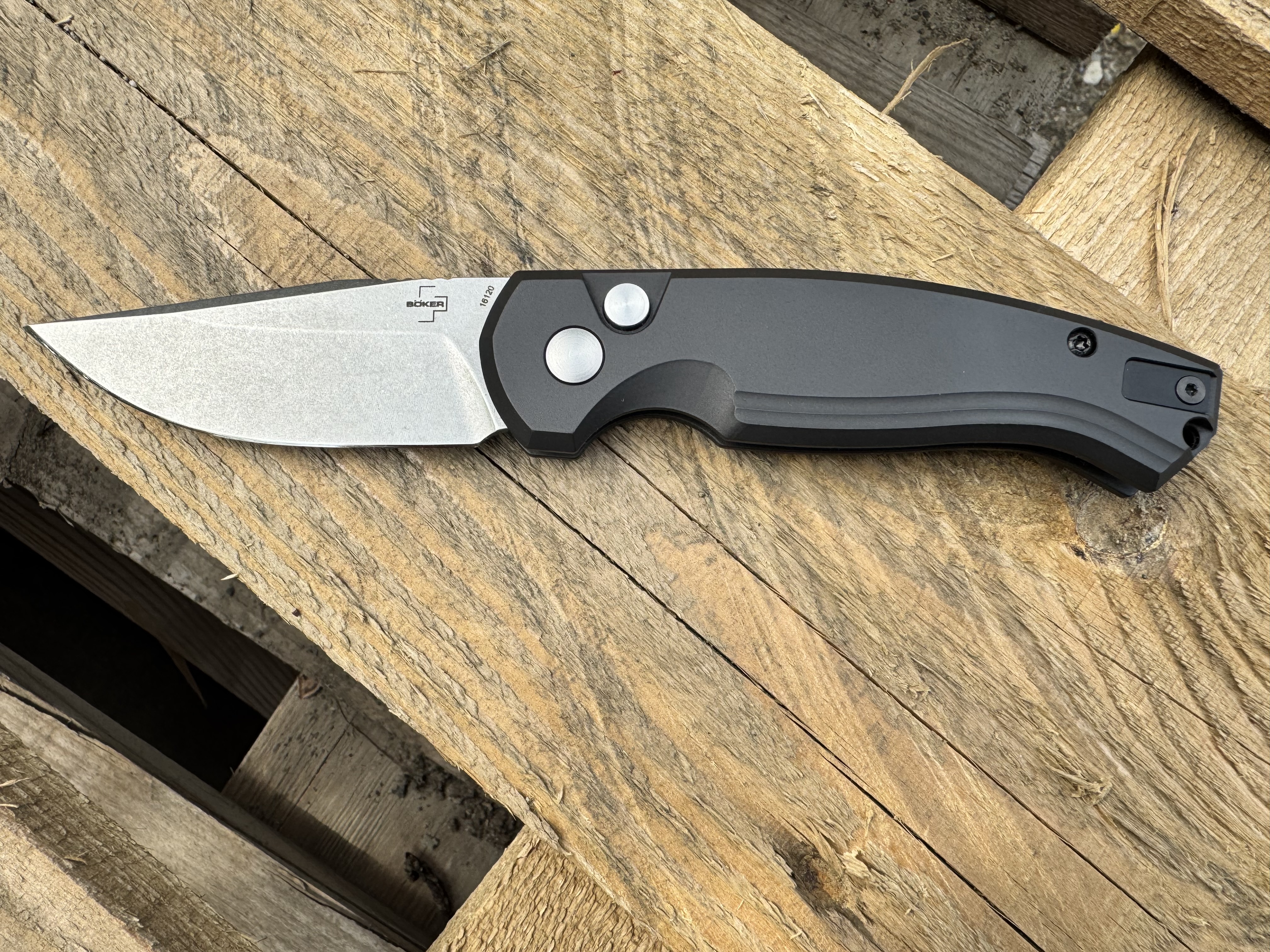 Вітаю шановне товариство! Пропоную на продаж свій ніж Boker Plus Karakurt. Ніж купувався прямо у виробника на Boker.de. Брав собі як літній ніж на кишеню. Ергономічне руків’я і невеликий клиночок роблять цей ніж відмінним кандидатом міського edc ножа. Ніж зроблений на замовлення на заводі Hogue в Америці, з їхньою чудовою термообробкою сталі. На жаль, є і мінуси. Заточування зроблене на 4- , а також анодування руківʼя досить швидко почало витиратися, сподіваюсь, буде видно на фото. Що маємо у результаті: неймовірно харизматичний та ергономічний автомат, з гарною термообробкою, який має несуттєві недоліки і зможе дарувати радість від володіння новому господарю. Ціна: 10000 грн. Завжди відкритий і для ваших пропозицій. ТТХ: Марка сталі: 154СМ; Довжина клинка, мм: 78; Механізм фіксації: Button lock; Загальна довжина, мм: 192; Товщина клинка, мм: 3.1; Форма клинка: Drop Point; Довжина руків'я, мм: 114; Колір руків'я: чорний; Тип заточування: плейн; Матеріал руків'я: алюміній; Фінішна обробка: Stonewash; Кліпса: двостороння; Вага, г: 95; Країна виробник: США. Ніж зараз знаходиться у Чехії, за необхідності за кілька днів буде в Україні.
