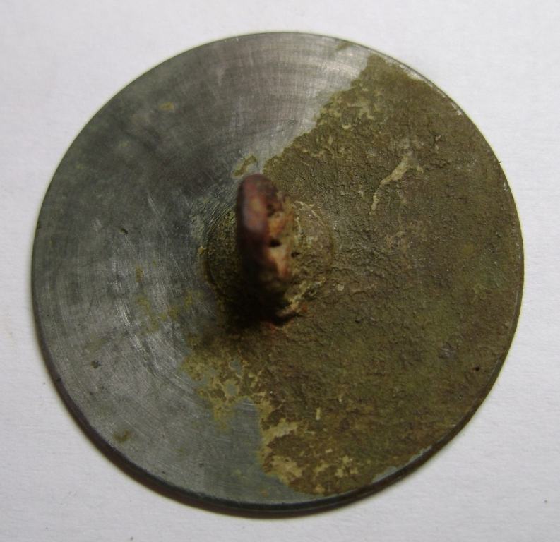 приветствую коллеги , вот накопалась така пуга , вроде посеребряная , диаметр -34 мм , абсолютно плоская ,сопутка -предметы 18-19 век, может кому попадалась такая ? рядом была переправа и активные боевые дейсвия в 44-м и в гражданскую