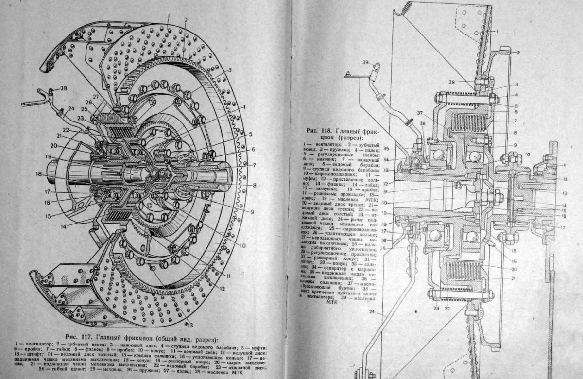 Зубчатый венец главного фрикциона Т-34 и машин на его базе (стоит на центробежном вентиляторе двигателя В-2-34) Рис.117 и 118 номер 2.
