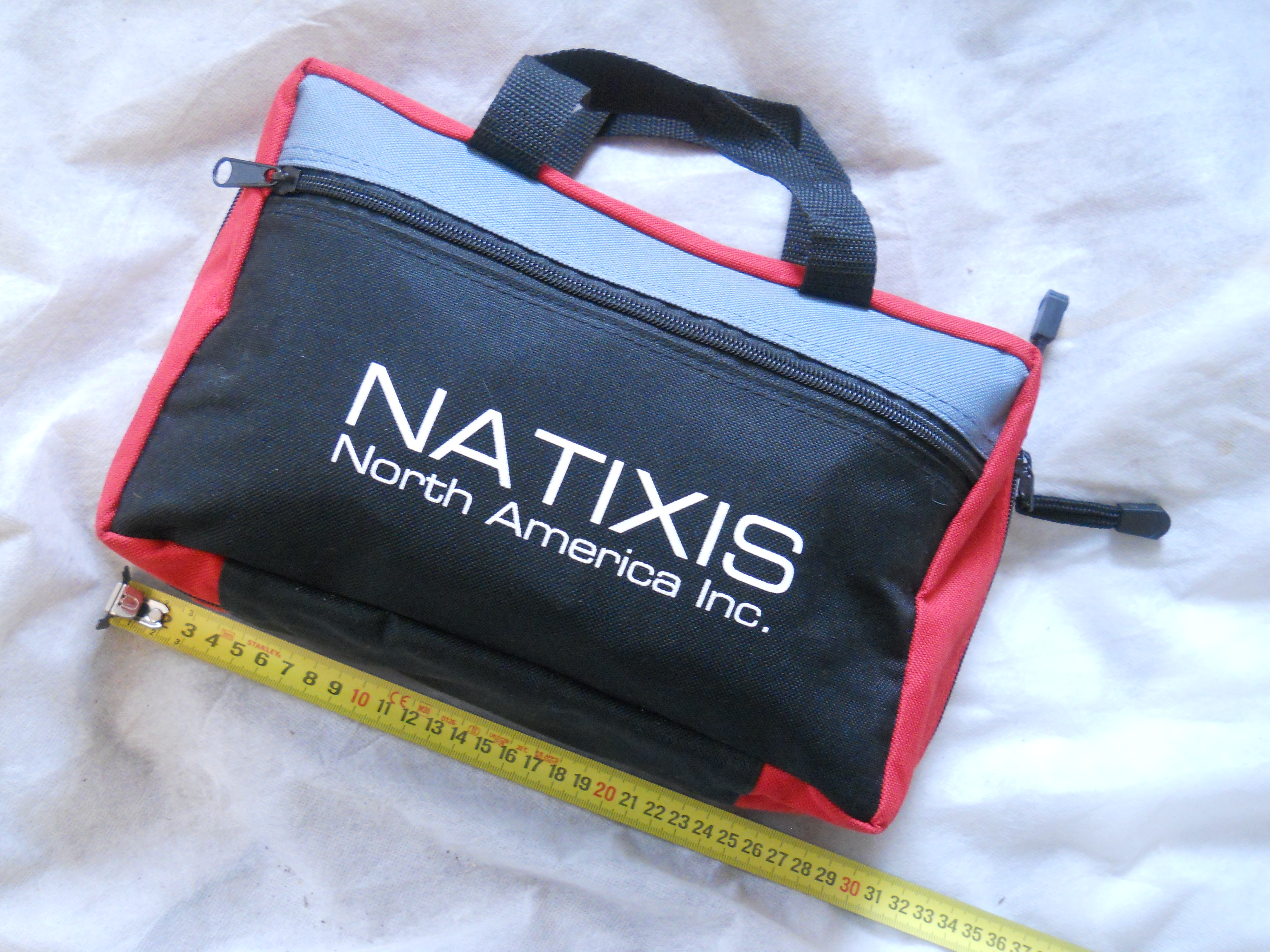 Вся аптечка - канадская. Premiers soins(французский) - Первая помощь. Сумка имеет название финансовой компании со штаб-квартирой в НЬЮ ЙОРКЕ (Манхеттен) Набор Медикаментов внутри стоит в США долларов 70.